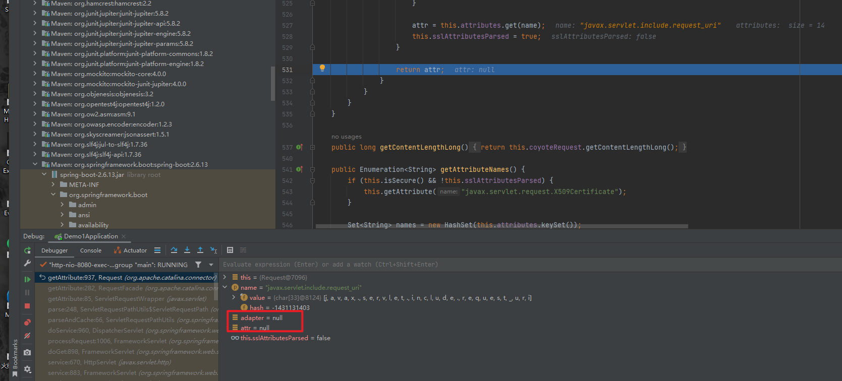 这里配置了attribute = null (应该就是默认配置)