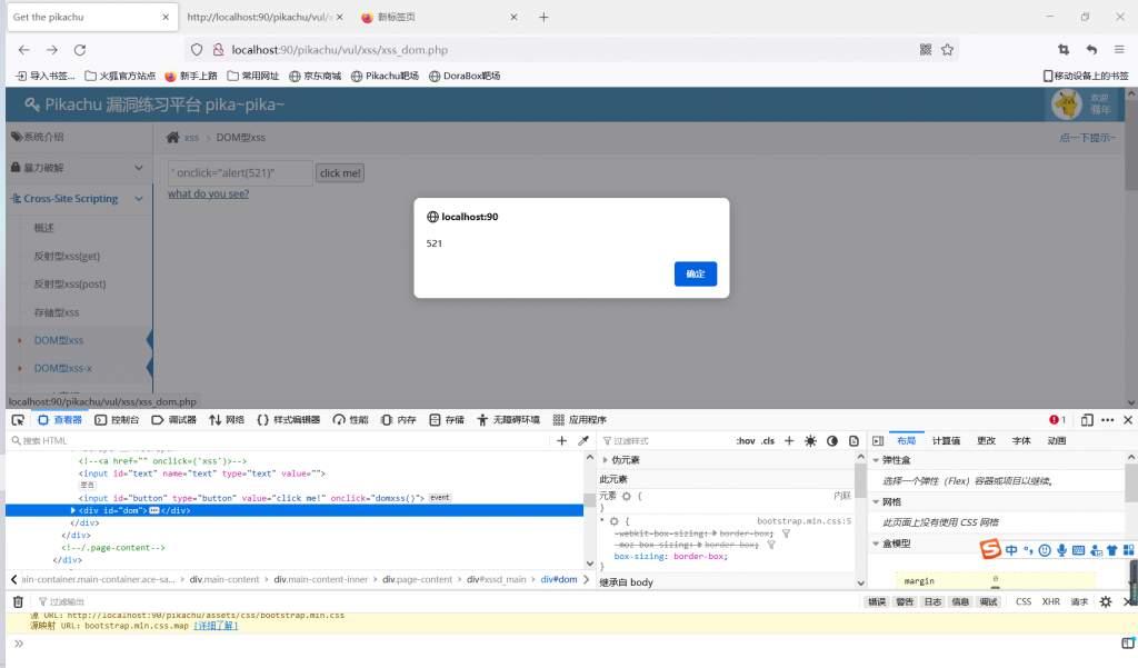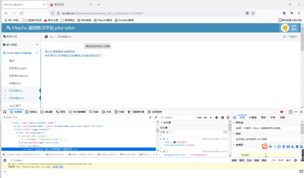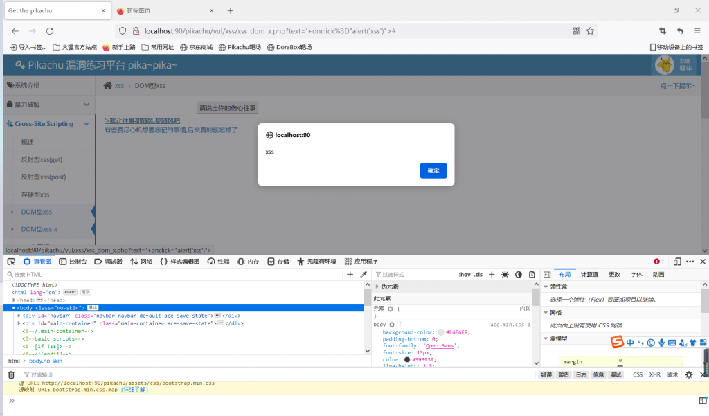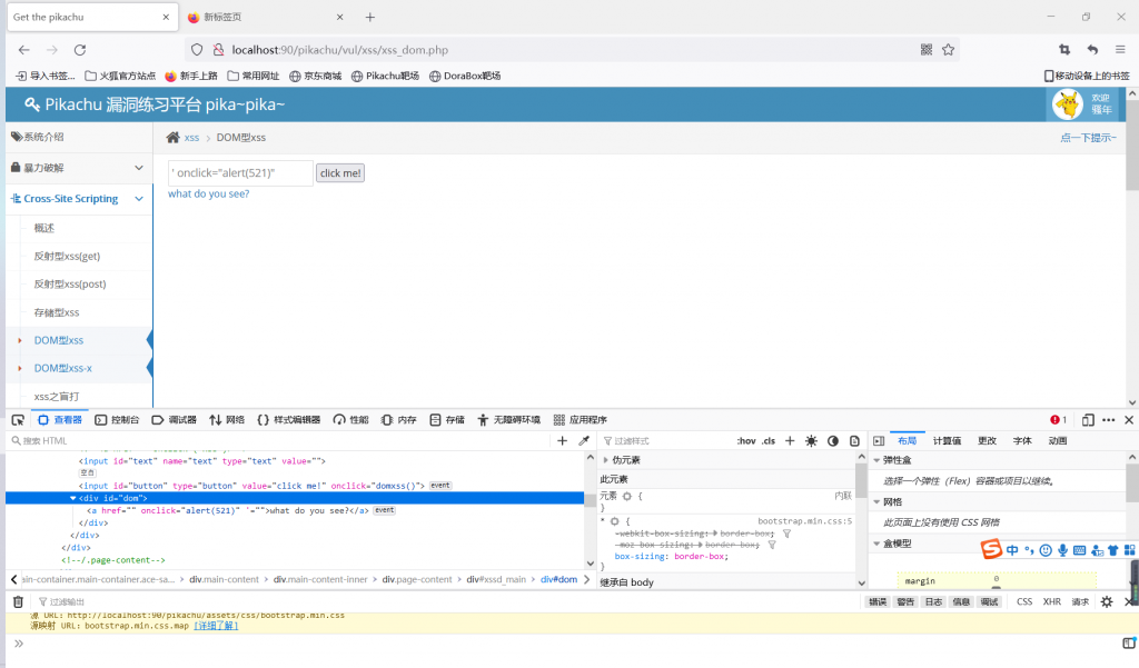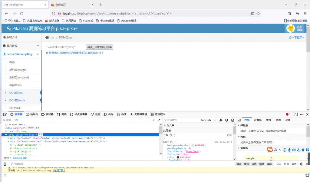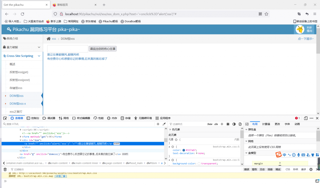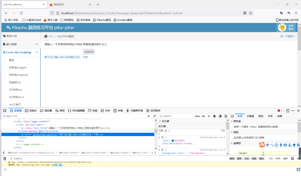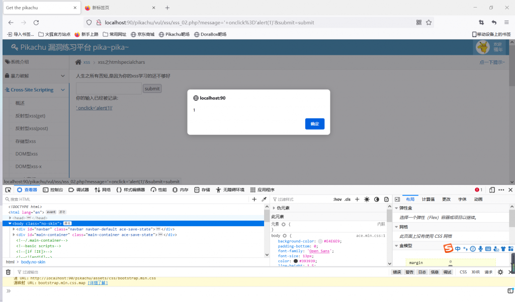 和上面的那个类似,直接输 ‘ onclick=”alert(‘xss’)” (与上面那个不同这个会在url里显示)