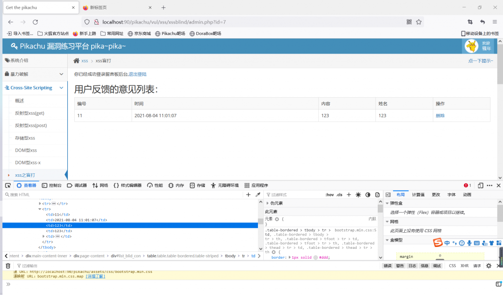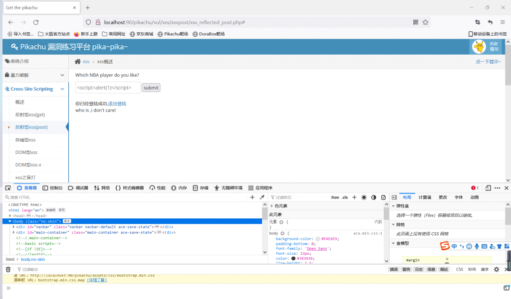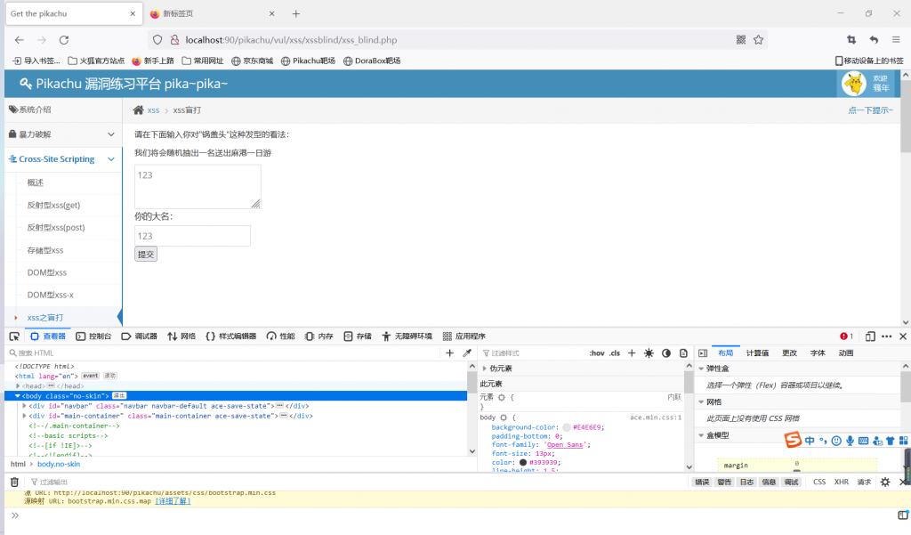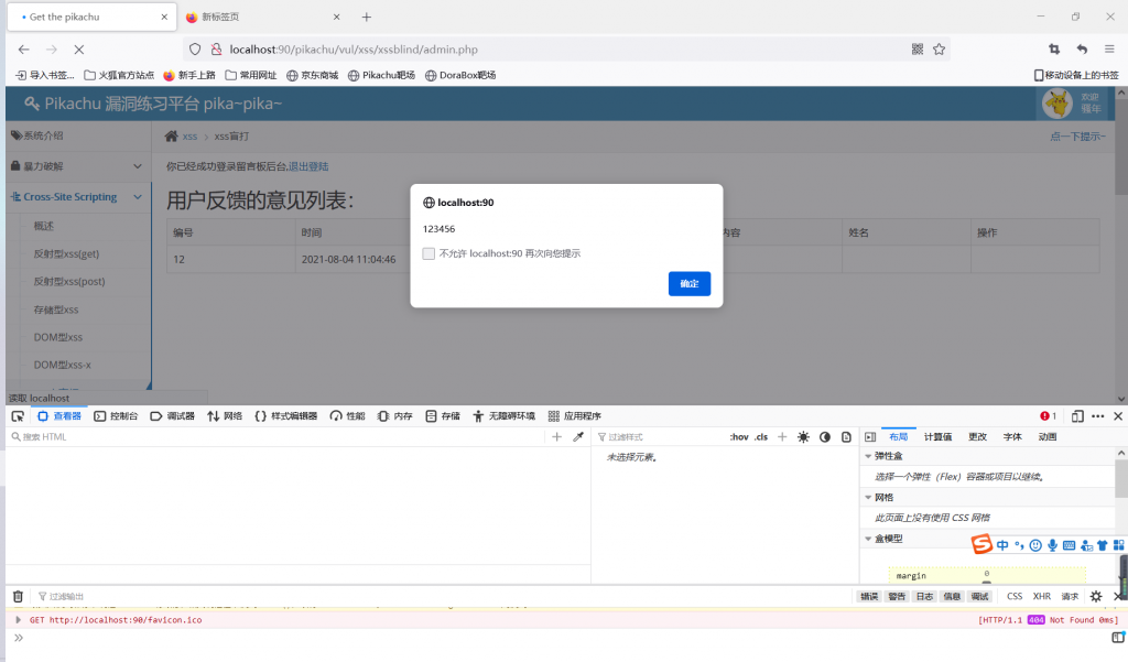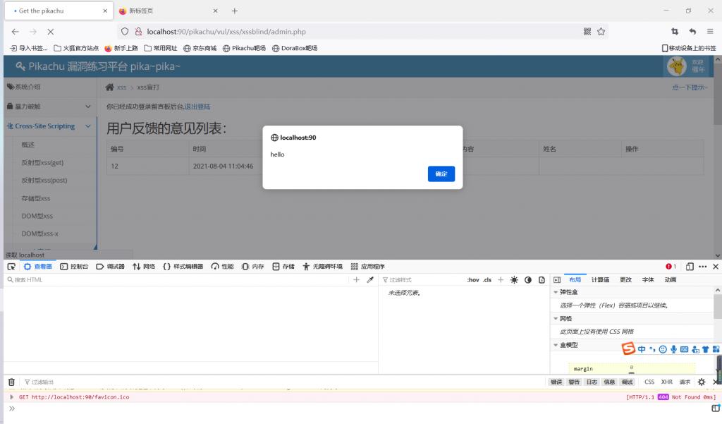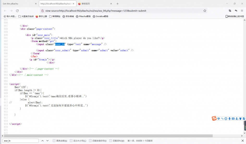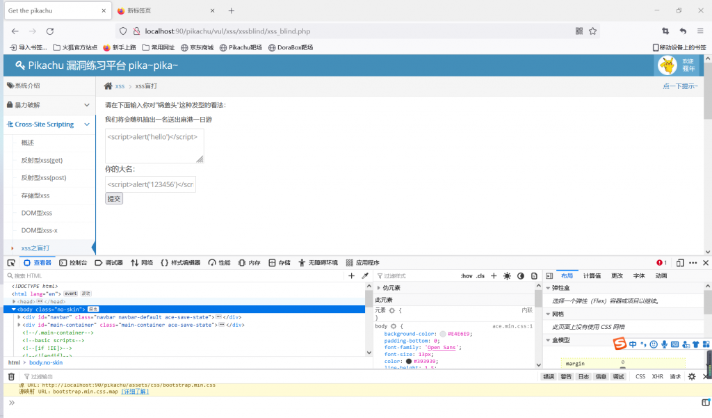 1直接在url地址栏中输入?message= <script>alert(1)</script> &submit=submit