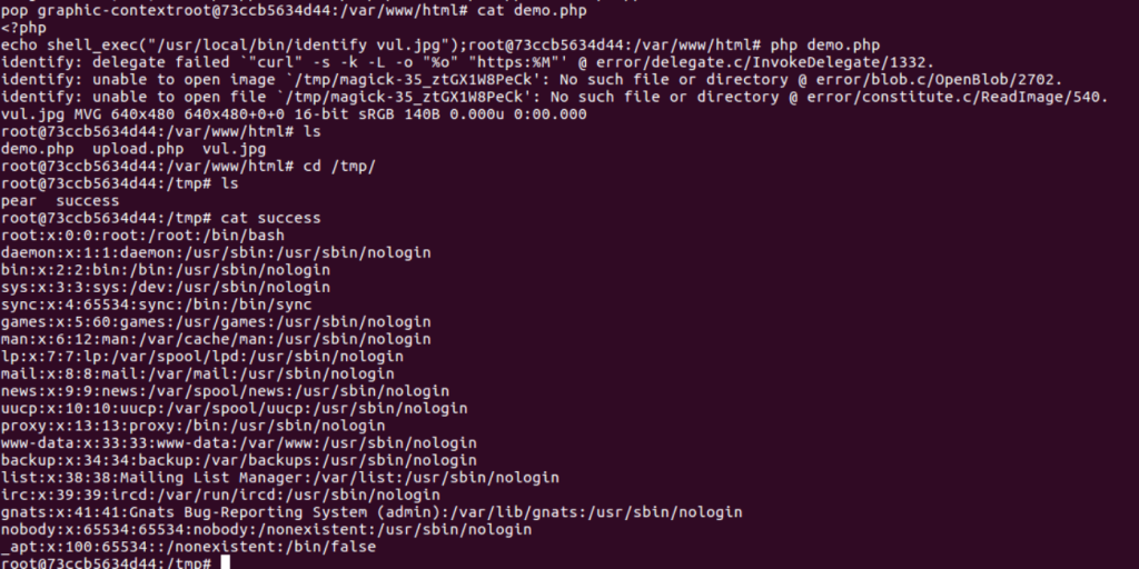 ImageMagick 之所以支持那么多的文件格式, 是因为它内置了非常多的图像处理库, 对于这些图像处理库, ImageMagick 给它起了个名字叫做”Delegate”(委托), 每个 Delegate 对应一种格式的文件, 然后通过系统的 system() 命令来调用外部的 lib 进行处理。调用外部 lib 的过程是使用系统的 system 命令来执行的,导致命令执行的代码。