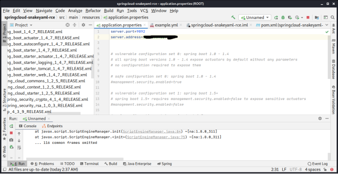 - spring.cloud.bootstrap.location 属性被设置为外部恶意 yml 文件 URL 地址