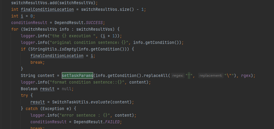 梳理一下,在content中通过 输入–setTaskParams–SwitchTaskUtils.evaluate 最后实现代码执行。