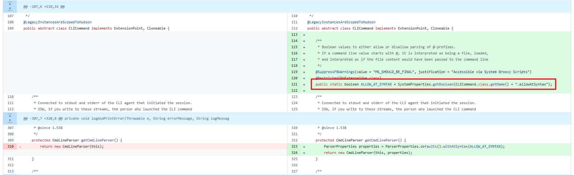 core/src/main/java/hudson/cli/CLIAction.java 文件中新增了ALLOW_AT_SYNTAX 变量来决定是否允许解析以 @ 前缀开头的内容