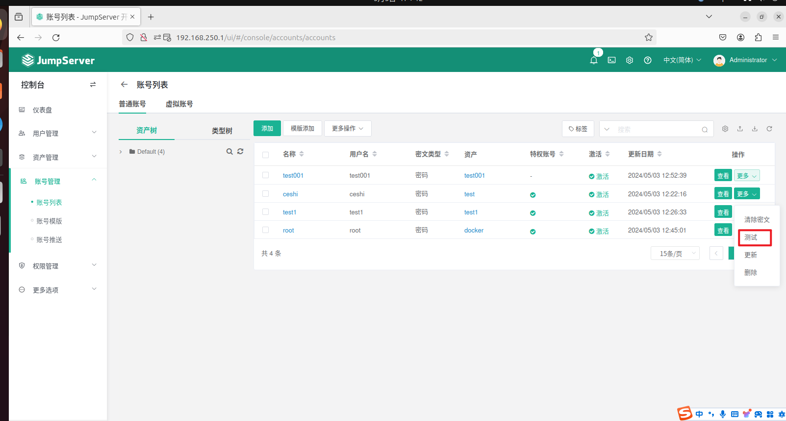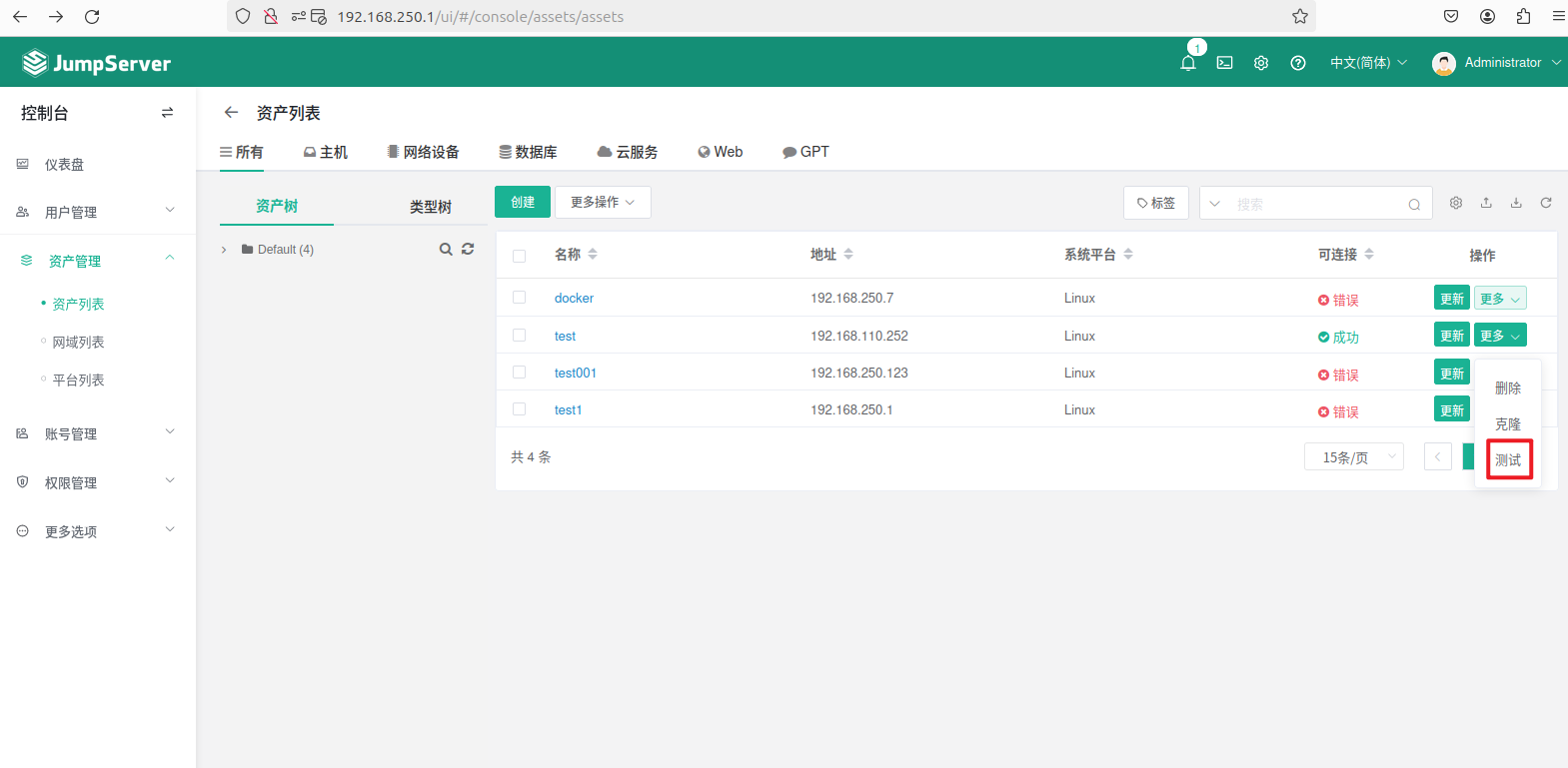 2、 登录admin用户–资产管理–资产列表–新增资产