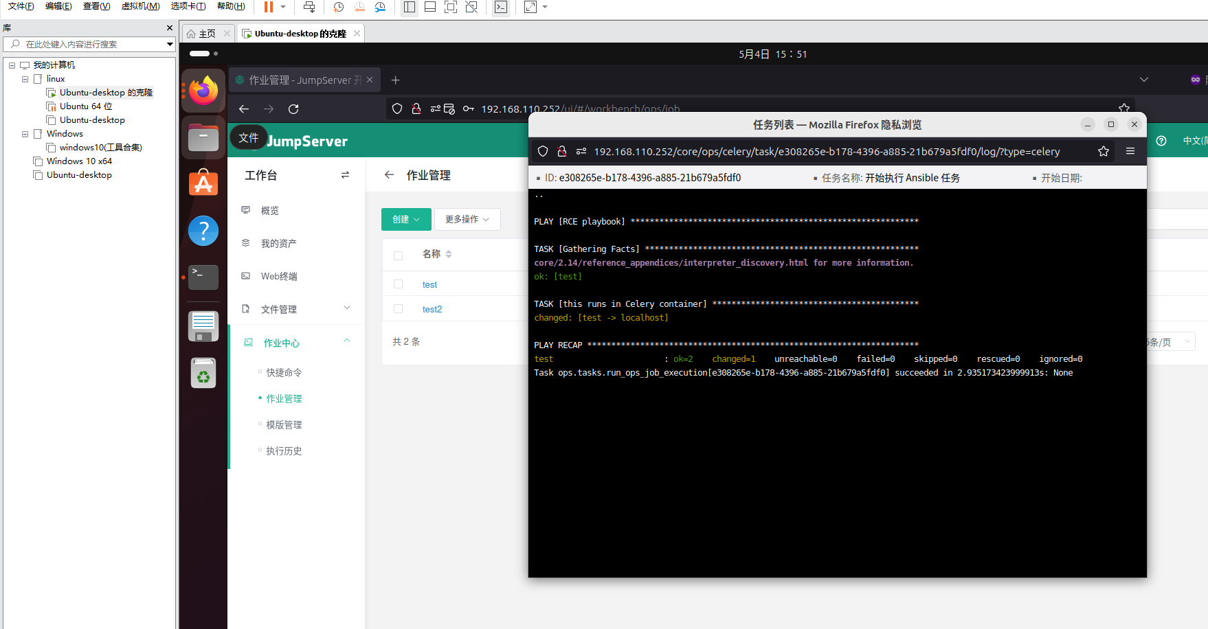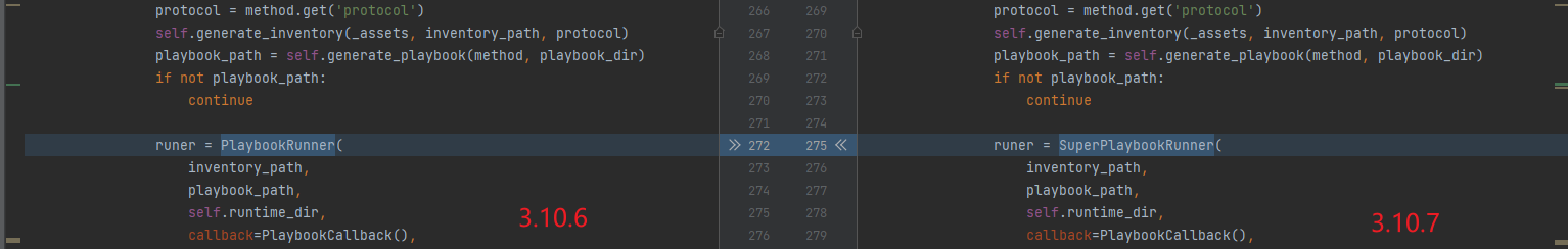 JumpServer 3.0版本开始引入批量下发作业功能,在其3.10.7之前版本中,攻击者可以通过构建恶意 playbook 模板绕过Ansible中的输入验证机制从而在 Celery 容器中以root权限执行任意代码。
