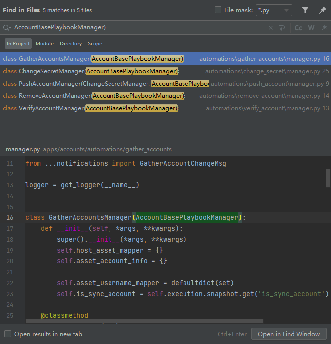 再去runner变量所在的函数get_runners所在的类BasePlaybookManager的应用。