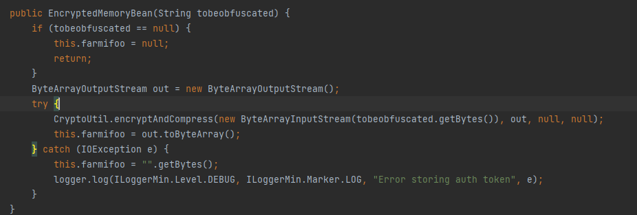 看下这个EncryptedMemoryBean类,是一个将解密后内容存储在内存的类。