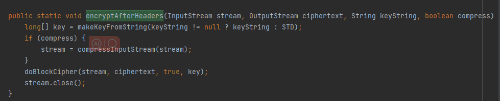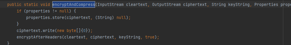 这里在encryAndCompress中先判断一个属性内容是否为空再去调用了encryptAfterHeaders,这里应该是其他地方调用这个函数的时候会有这个值。