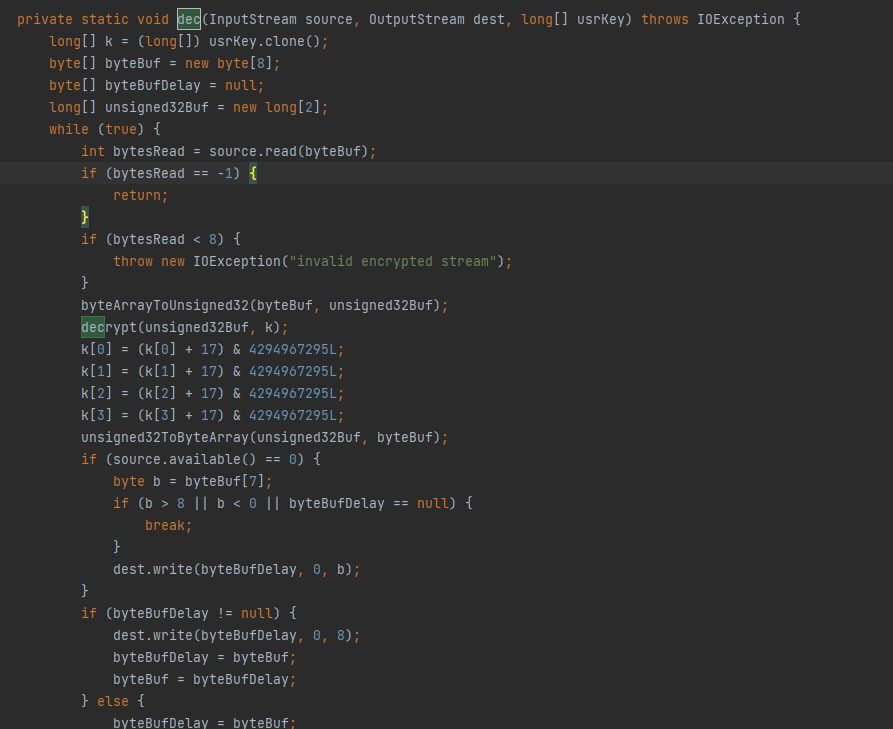 一开始我的思路是直接调用dec去解密输入的数据流,但是仔细一看,dec的输入usrkey需要makeKeyFromString