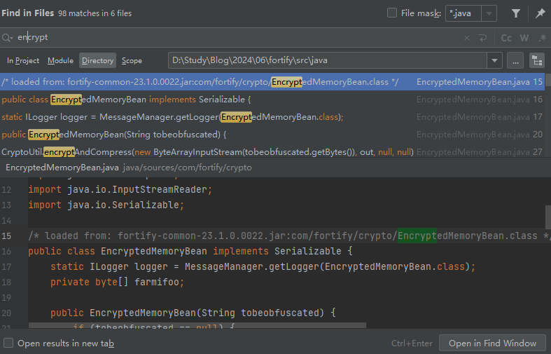 然后发现dec调用了很多com.fortify.utils.cryptoutils中的方法。
