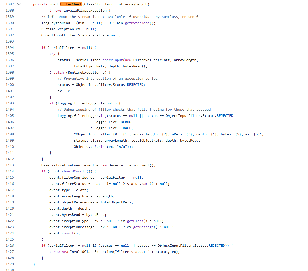 查看ObjectInputStream#filterCheck方法