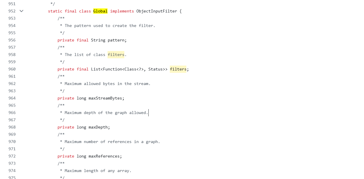 简单说,java9在ObjectInputStream中添加了调用过滤器检查类的方法,这个过滤器包括了全局过滤器和局部过滤器,有限调用全局过滤器。