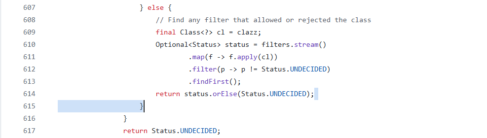 调用调用一系列的过滤器,获取第一个不是Status.UNDECIDED状态的值,如果没有则返回一个空的Optional